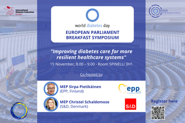 EventsFebruary 28 – March 02, 2023Exhibition at the European Parliament – Joint health checks for CVD and diabetes21-24 November 2022Exhibition – A journey through the history of diabetes on the centenary of the discovery of insulin15 November 2022World Diabetes Day 2022 – European Parliament Breakfast Symposium: Improving diabetes care for more resilient healthcare systems12 October 2022European Parliament Lunch Debate – Towards a new Diabetes Resolution12 May 2022Webinar: Supporting ambitious Diabetes and CVD Roadmaps in the context of the ‘Healthier Together – EU NCD Initiative’25 January 2022Webinar: Improving diabetes outcomes and quality of life for PwD – If not now, when?25 February 2021Webinar: Blueprint for Action on Diabetes in the EU by 2030