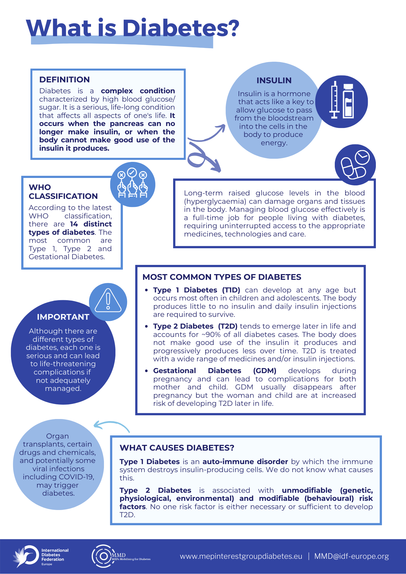 This MMD Diabetes Factsheet provides a short overview of what diabetes is and what it means to live with the condition.
