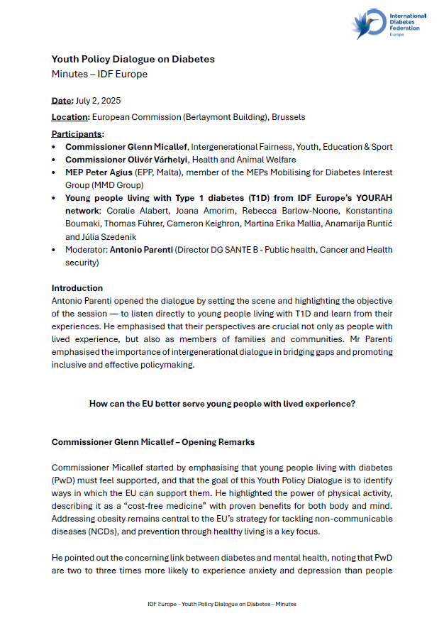 The MMD group welcomes the outcomes of this Dialogue and remains committed to amplifying the voices of young people living with diabetes across EU institutions and beyond.